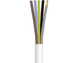 Hvid 3G1,0 PKAJ ledning fra NKT, ideel til tilledninger i brugsgenstande og indre ledninger i belysningsgenstande. Opfylder SB afsnit 6:2001.