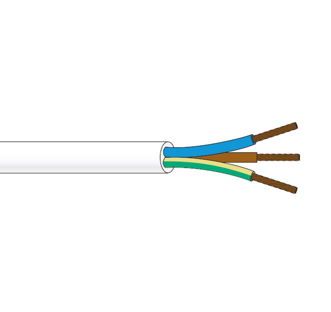 Alsidig 3x0,75mm² ledning med blyfri PVC-isolering og kappe. Ideel til tilledninger og indre ledninger i diverse apparater.