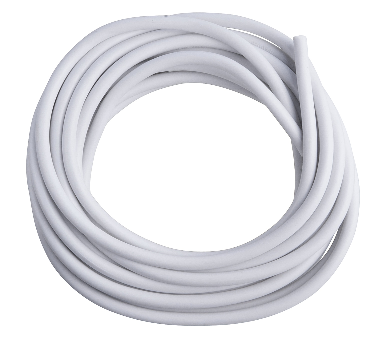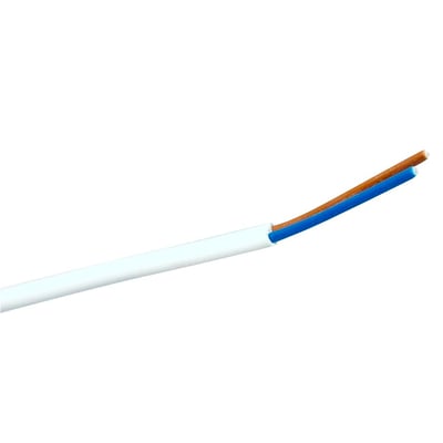 Rund E-line plastkappeledning H03VV-F i hvid farve med 3 ledere og et tværsnit på 0,75 mm², perfekt til lette elektriske apparater. Længde på 10 meter.