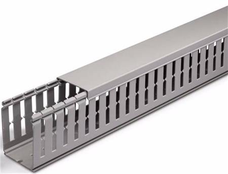 Grå halogenfri ledningskanal (RAL 7035) til temperaturer fra -40 til +100°C. Fremstillet i thermoplastik, resistent over for syre, olier og smøreolie. Leveres i 2-meters længder.