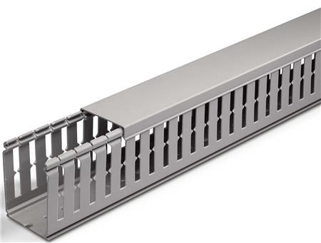 Grå ledningskanal (RAL 7035) i halogenfri termoplastik. Modstandsdygtig over for syre, olier og smøreolie. Leveres i 2 meters længder. Godkendelser: UL94 V0, IEC 695-2-1, EN 50085-2-3, EN45545.