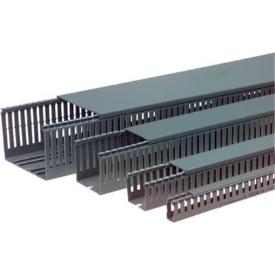 Opslidset ledningskanal i blyfri PVC, 80x80 mm med 4 mm slids, grå (RAL 7030). Ideel til organiseret kabelføring i el-tavler og styreskabe.