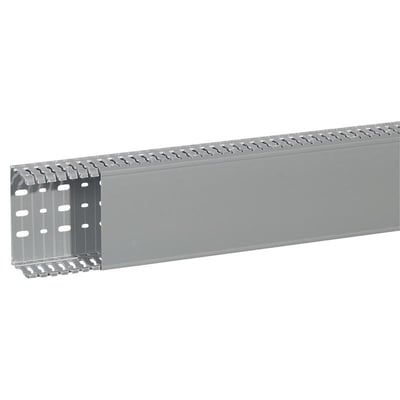Denne ledningskanal fra Legrand er udført i grå RAL 7030 PVC og er designet til effektiv og sikker kabelføring.