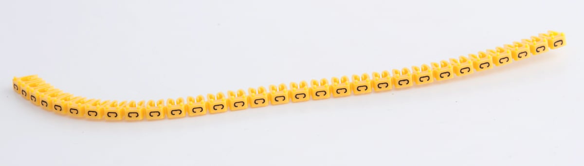 Disse gule ledningsmærker fra Legrand er designet til hurtig og nem identifikation af ledninger med en diameter på 1,5-2,5 mm². Mærkerne er fremstillet af polyamid og er mærket med 'C' i sort skrift.