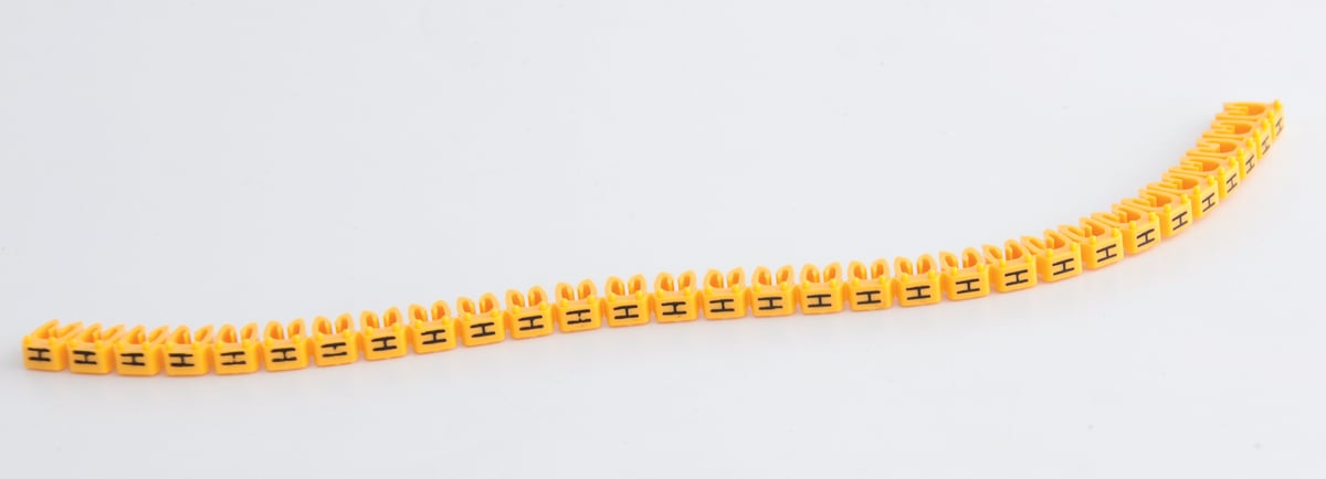 Gule ledningsmærker med sort tekst til 1,5-2,5 mm². Kan monteres før eller efter ledningsføring. Hurtig montering med magasin.