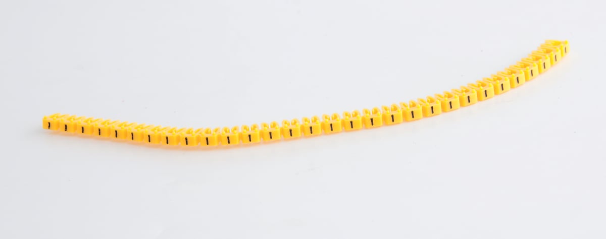 Gule ledningsmærker med sort tekst til 1,5-2,5 mm² ledere. Nem montering før eller efter færdiggørelse.