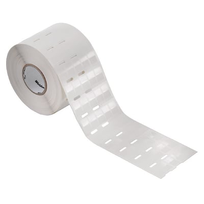 Hvidt lednings-/kabelmærke THM WO 12/18 WS fra Weidmüller. Selvklæbende polyester film, 12x18mm med 12x9mm skrivefelt. Halogenfri og uden print. Til 0.75-6mm² / Ø1-3mm. Rulle med 10000 stk.