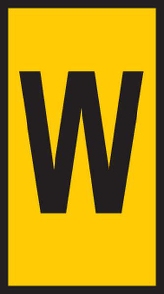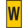 WIC ledningsmærker i gul med sort tryk 'W'. Fremstillet i polyamid 6.6. Til ledninger efter montering. Dimensioner: 0,5-1,5 mm².