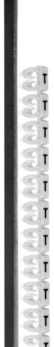 Gule ledningsmærker med sort tekst, designet til nem og hurtig montering før eller efter ledningsføring.