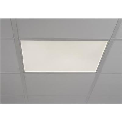Armaturet måler 595x595 mm og er beregnet til montage i lofter (modul 600x600) med synlige T-skinner. Alternativt kan det monteres som påbygget (kræver tilbehør).
