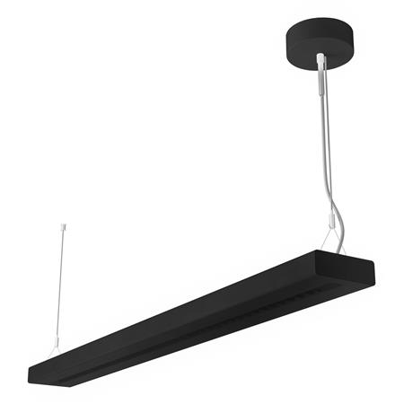 Pendelarmatur til kontoret med CRI90 og power select (PS) funktion, 1500 mm. Minimalistisk design i sort aluminium. Nem opgradering af lyskilde og driver (EVERLOOP design).