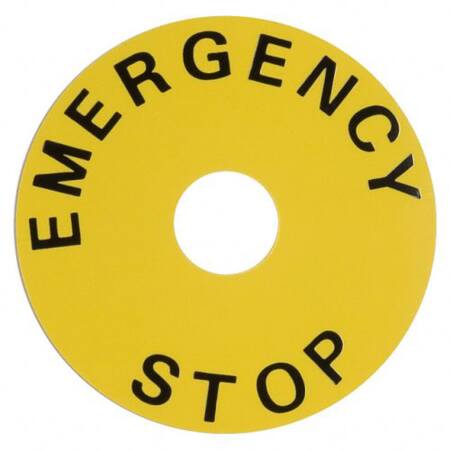 Denne forklaringsplade A22Z-3466-1 er designet til nødstop og har en diameter på 60 mm. Den runde form og gule farve sikrer høj synlighed.