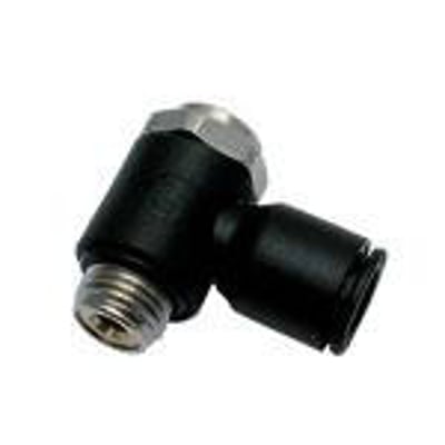 Flow regulator med udvendig BSPP og metrisk gevind. Ø8 mm, G3/8. Fremstillet af teknisk polymer.