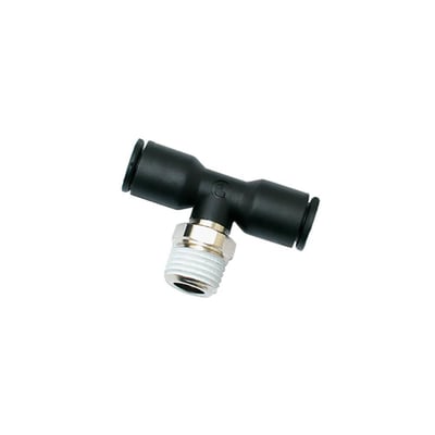 Dette T-stykke fra Parker Hannifin er designet med udvendigt BSPT gevind og er ideelt til forskellige pneumatiske applikationer.