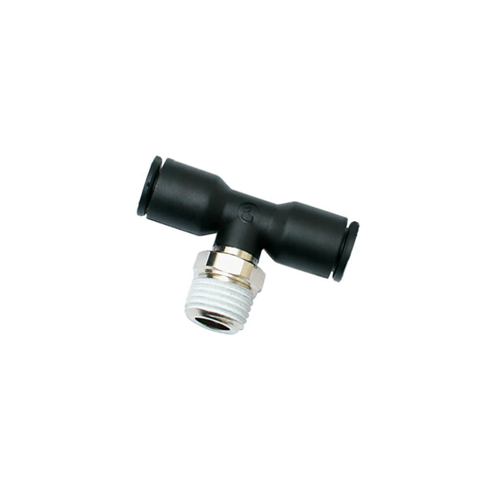 Legris T-stykke med udvendigt BSPT gevind. Dimensioner: ØD: 6 mm, C: R1/4. Materiale: Technical Polymer. Overholder ROHS.