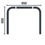 Stabil forhængsskinne på 90x90x90 cm med loftbeslag. Fremstillet af aluminiumsprofiler og beregnet til badeløsninger, badekar, afskærmning af rum m.m. Systemet er enkelt og holdbart.