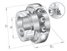 INA GE25-XL-KTT-B spændingsleje. Sfærisk yderring, fastspænding med excentrisk spændering. T-tætninger på begge sider. X-life for ekstra levetid. Mål: 25 x 52 x 44,5 mm.