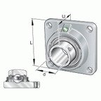 INA RCJY55-XL-I spænderingslejeenhed med firehuls flangelejehus i støbejern og 2 pinolskruer. Dim.: 162 x 162 x 64,4 mm.