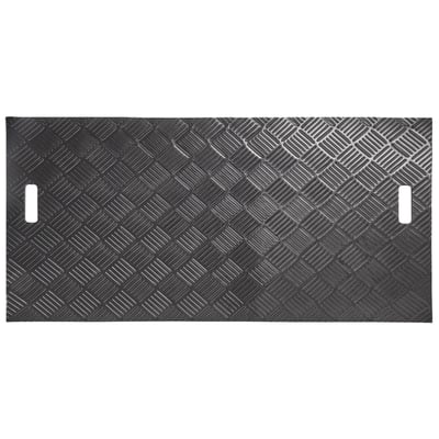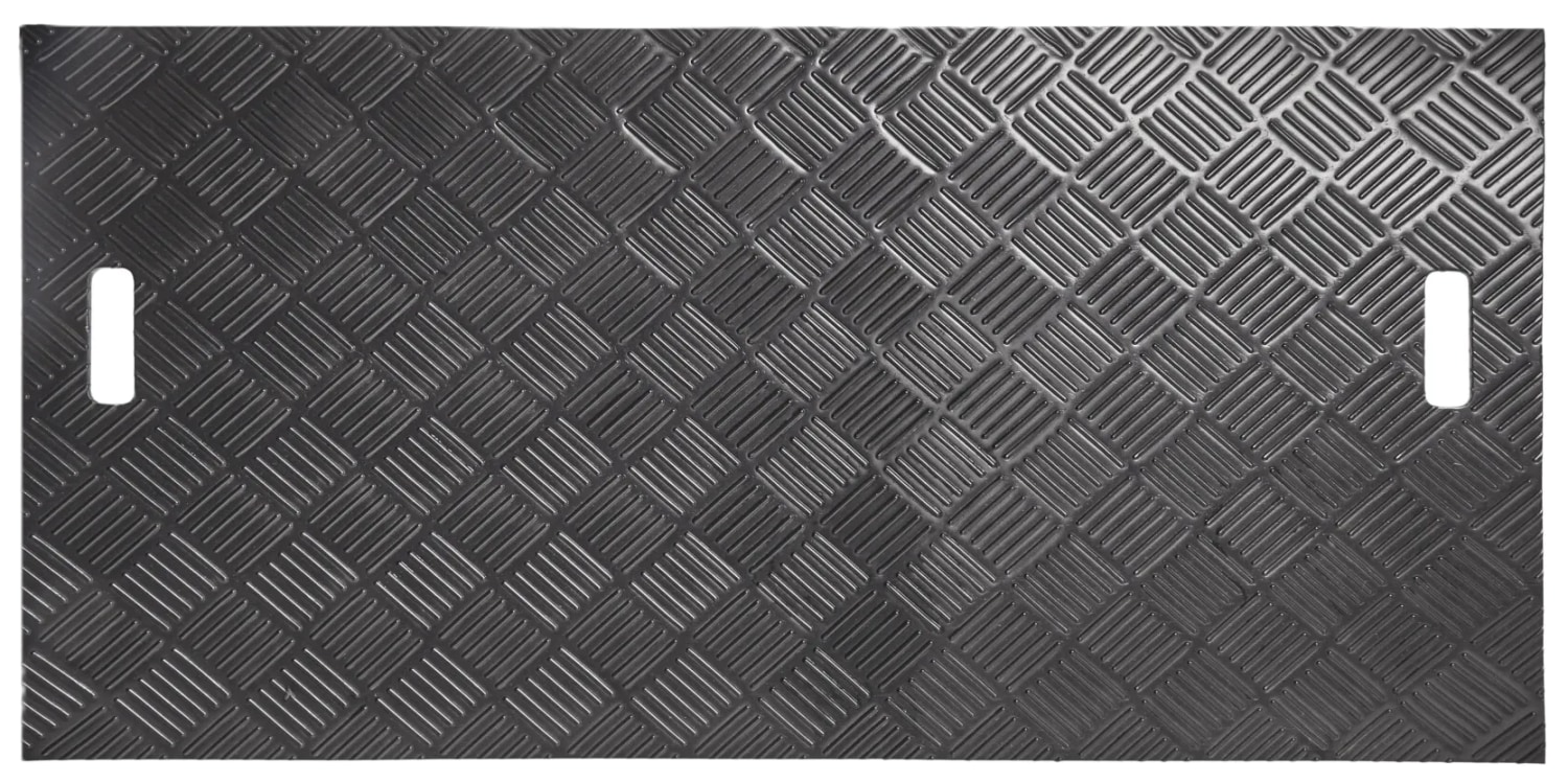 Robust gangplade i størrelsen 1200 x 600 x 8 mm, udstyret med praktisk håndtag for nem håndtering og transport.