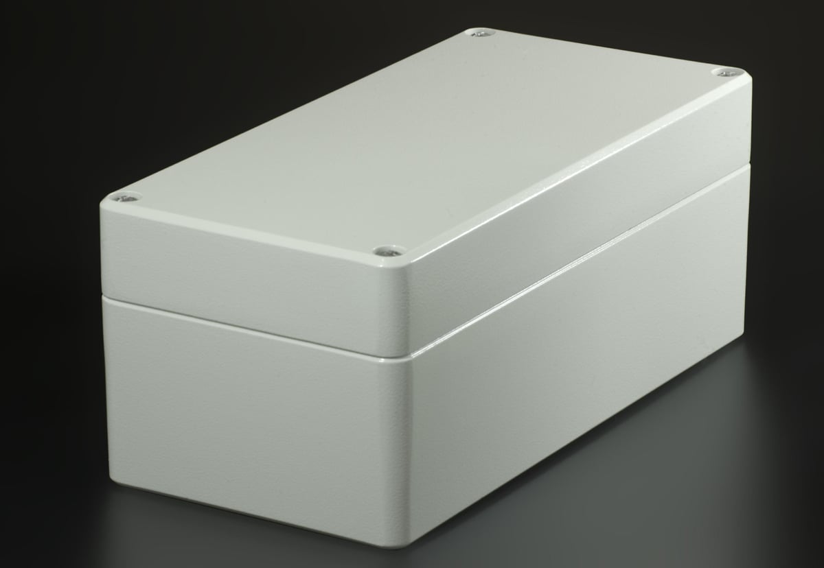 Letmetalkasse AS124. Alsidig og robust kasse i aluminium, 240x120x100mm, IP66-klassificeret.