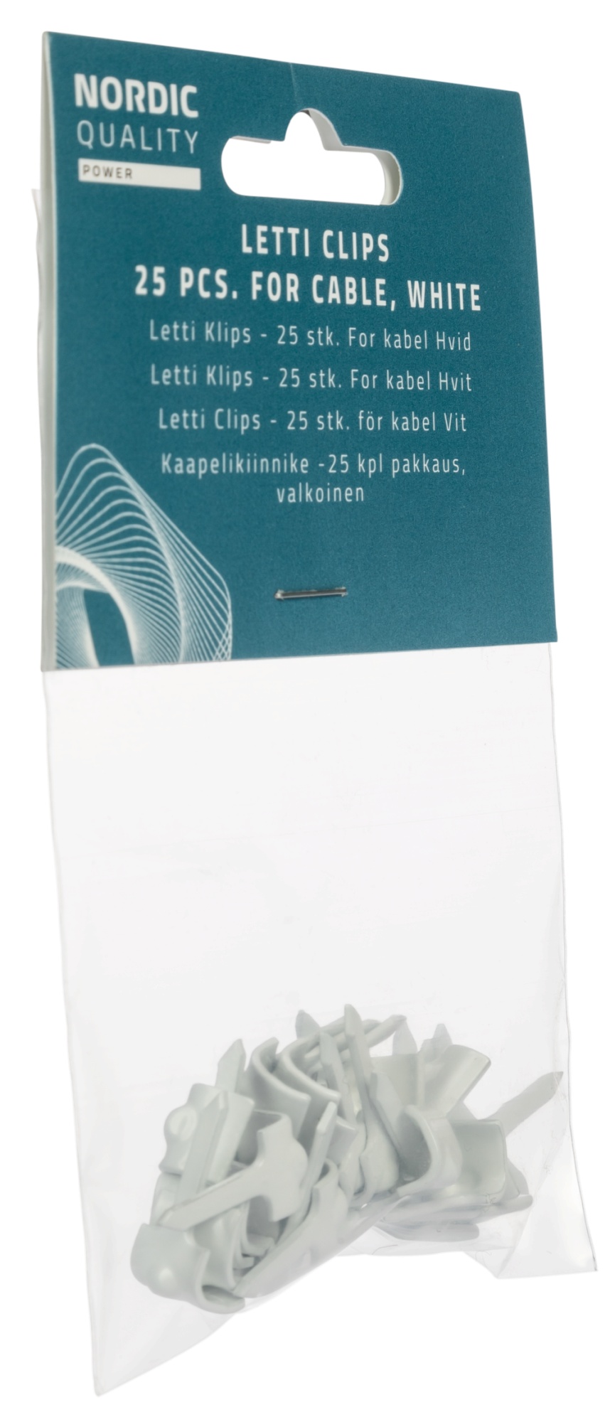 Praktisk Letti klips til PR kabel, der sikrer nem og sikker installation. Leveres i hvid.