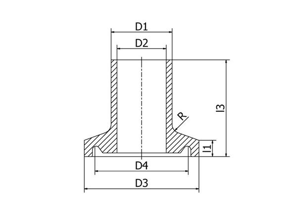 Levnedsmiddel fitting til brug i fødevareindustrien og lignende. Denne mini clampkrave er udført i syrefast satin og har en udvendig diameter på 14 mm.
