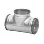 Centrisk T-rør fra Lindab, bygget med presset PSU eller helpresset overdel. Galvaniseret stål.