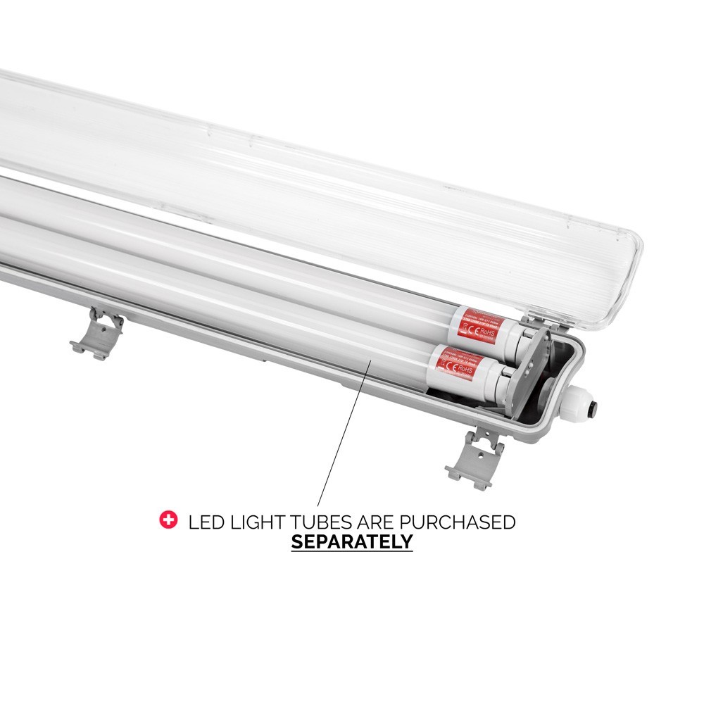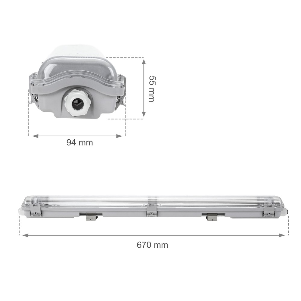 Vandtæt LED armatur med IP65 klassifikation. Passer til 2x 60cm LED rør med G13 fatning. Robust og holdbart.