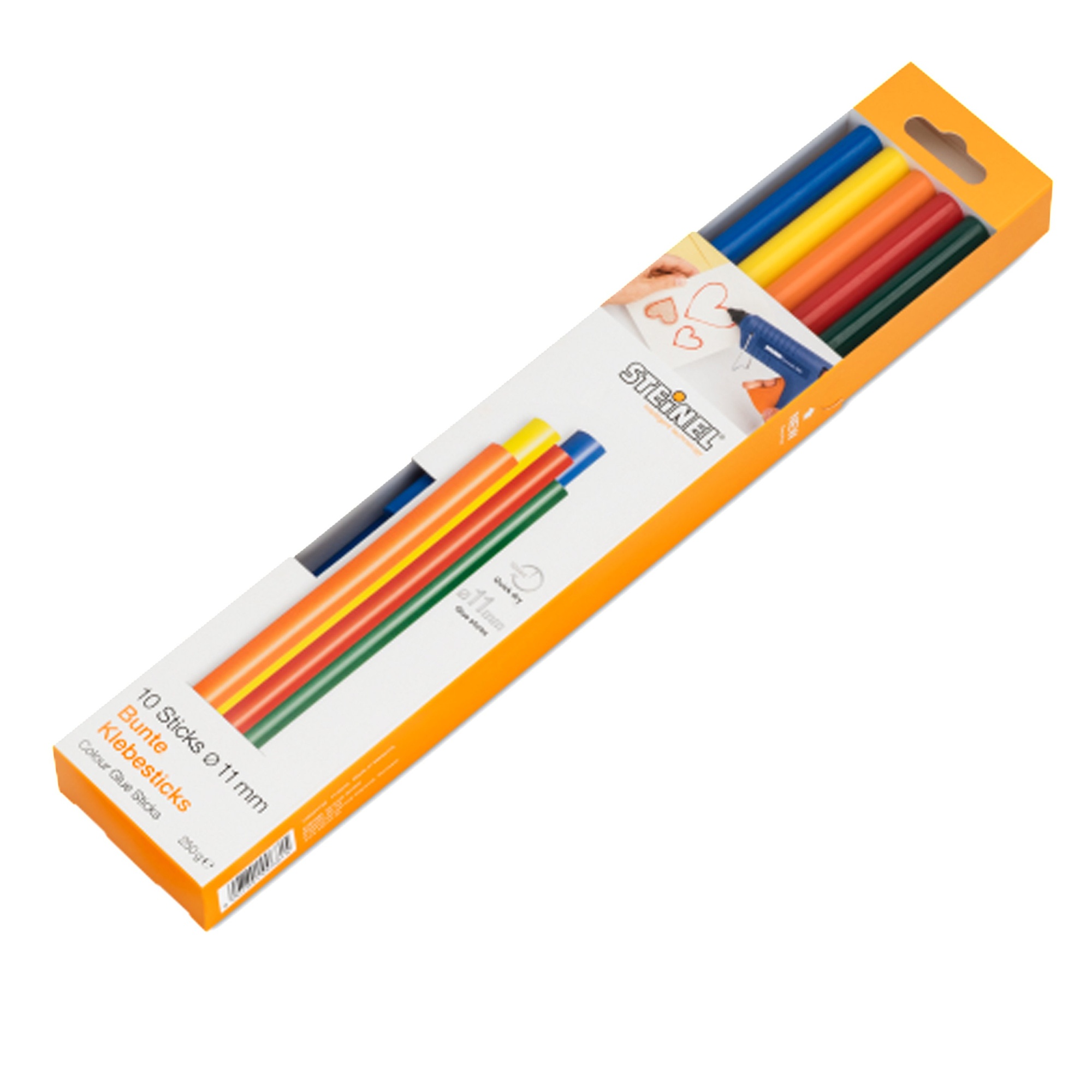 Farverig smelteklæber af høj kvalitet, ideel til kunsthåndværk og dekoration. Denne pakke indeholder 10 limstifter (250g) og er nem at genlukke.