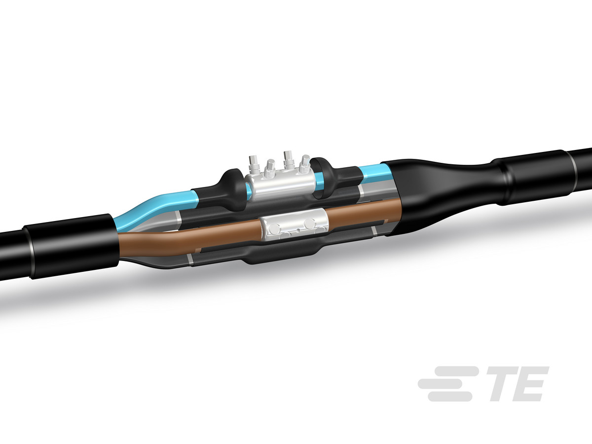Samlemuffe med tykvægget krympeslanger med lim og skrueforbindere med knækskruer og skillevæg, til plastisoleret kabel, 0,6/1 kV, 4 x 95-240 mm², DIN 47640, EN50393.