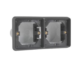 79. Lauritz Knudsen LK FUGA Soft 63 lodret designramme i koksgrå til 1x2 modul, vist med hvid baggrund.LK FUGA – Soft 63 lodret design ramme uden midtersprosse, 1x2 modul, koksgrå + teknisk monteringsramme