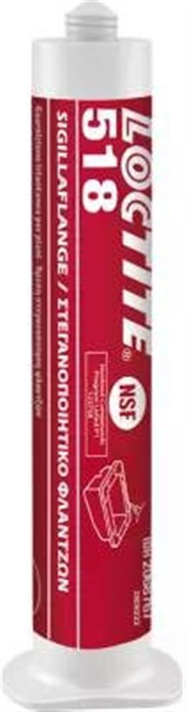 Loctite 518 er en halvfleksibel, middelstærk, anaerob flangepakning, der hærder ved indeslutning mellem tætsluttende metaloverflader uden adgang for luft. Den er specielt designet til brug på stive overflader af jern, aluminium og stål, både aktive og inaktive. Produktet er velegnet til automatiseret påføring og kan reducere procesomkostninger ved at eliminere behovet for manuel samling af konventionelle pakninger.