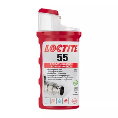LOCTITE® 55 gevindtætningssnor til metal- og plastrør/fittings. Giver øjeblikkelig tætning uden hærdetid. Godkendt til gas og drikkevand.