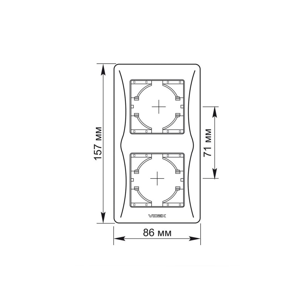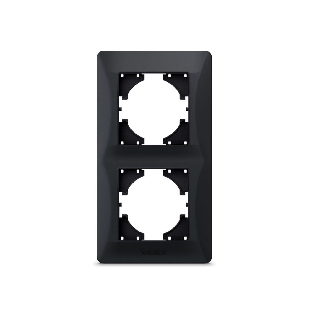 Ramme til stikkontakt, 2-polet, vertikal montering, i sort finish. Mål: 157x86x9 mm.