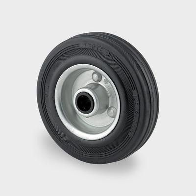 Løs hjul med sort massiv gummi, Ø100x30 mm, Ø12xNL44,4, rulleleje stålfælg. Byggehøjde: 100 mm. Maks. 70 kg belastning.