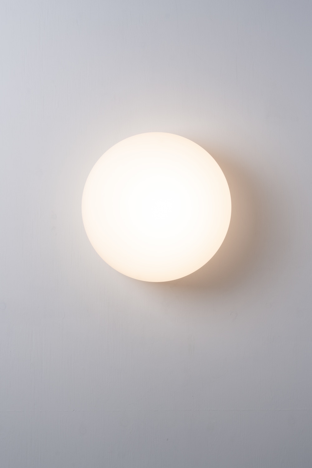 Solenne loft- og væglampe med 12W LED. 320mm diameter, 173mm højde. Dæmpbar, IP44, mat opal glas.