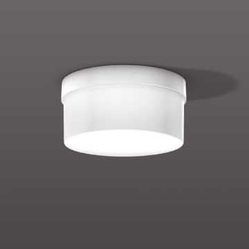 Universelt hvidt armatur til indendørs loft- eller vægmontering. Godkendt til fælles adgangsveje. Mål: Ø200 mm, højde 100 mm. IP43 ved loftmontering og IP44 ved vægmontering.
