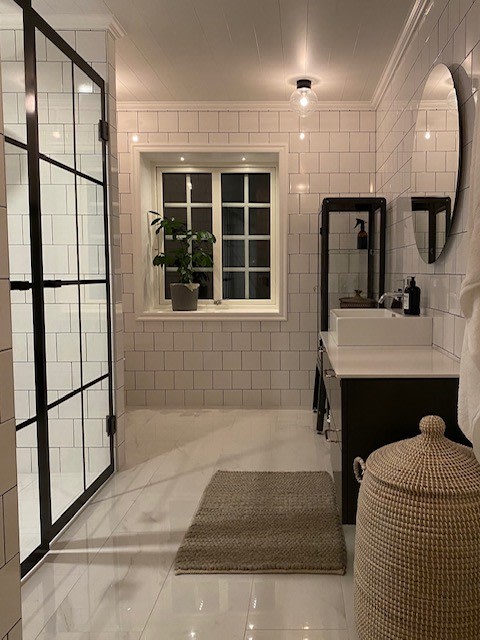 Lampen kombinerer sort og klart glas, hvilket giver et elegant udseende. Silikoneforseglingen mellem glas og bund sikrer tæthed og beskytter mod fugt.