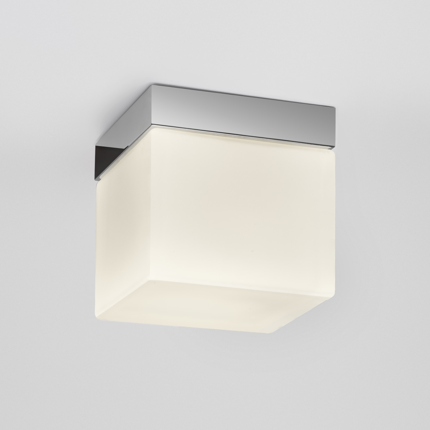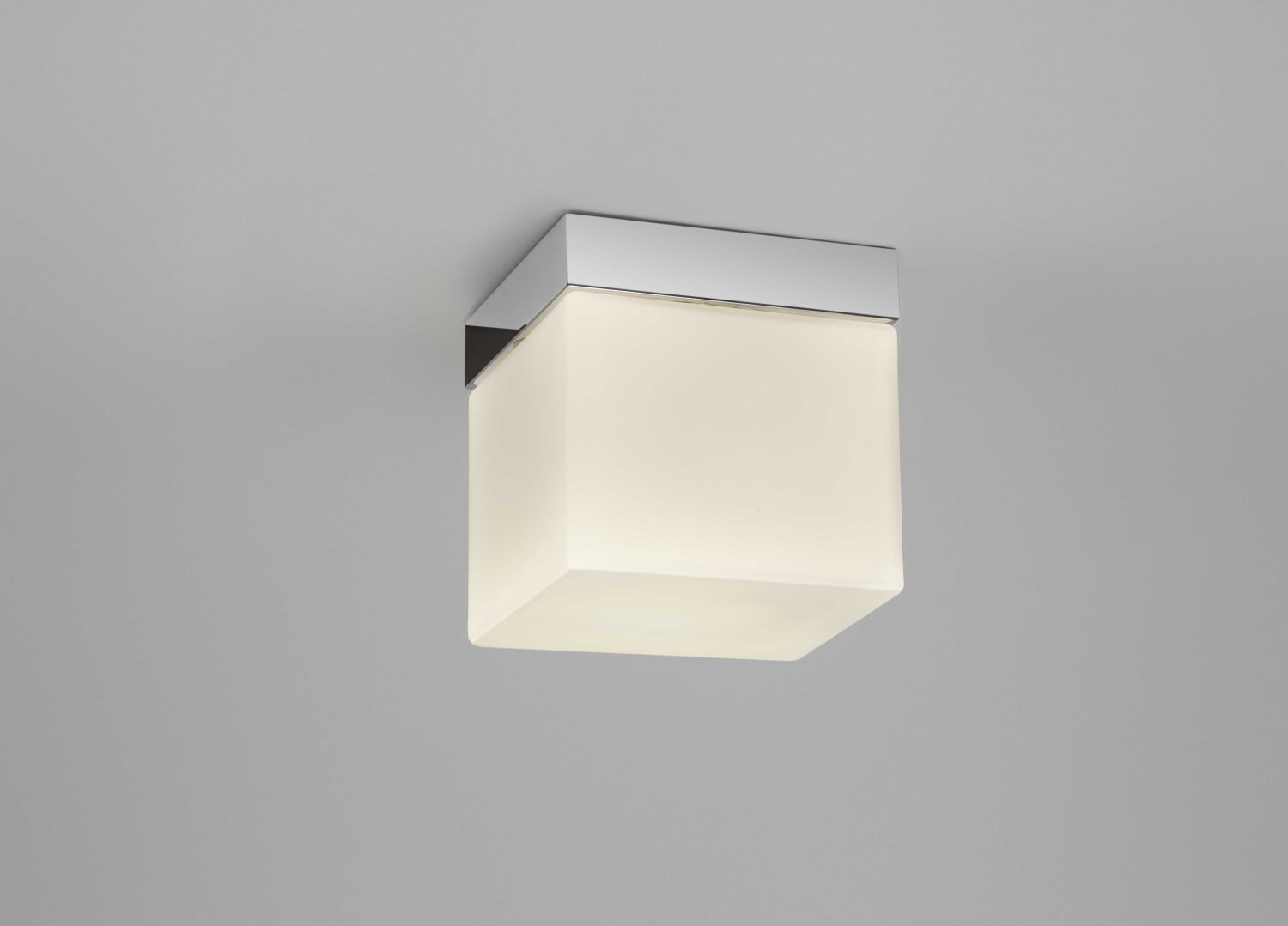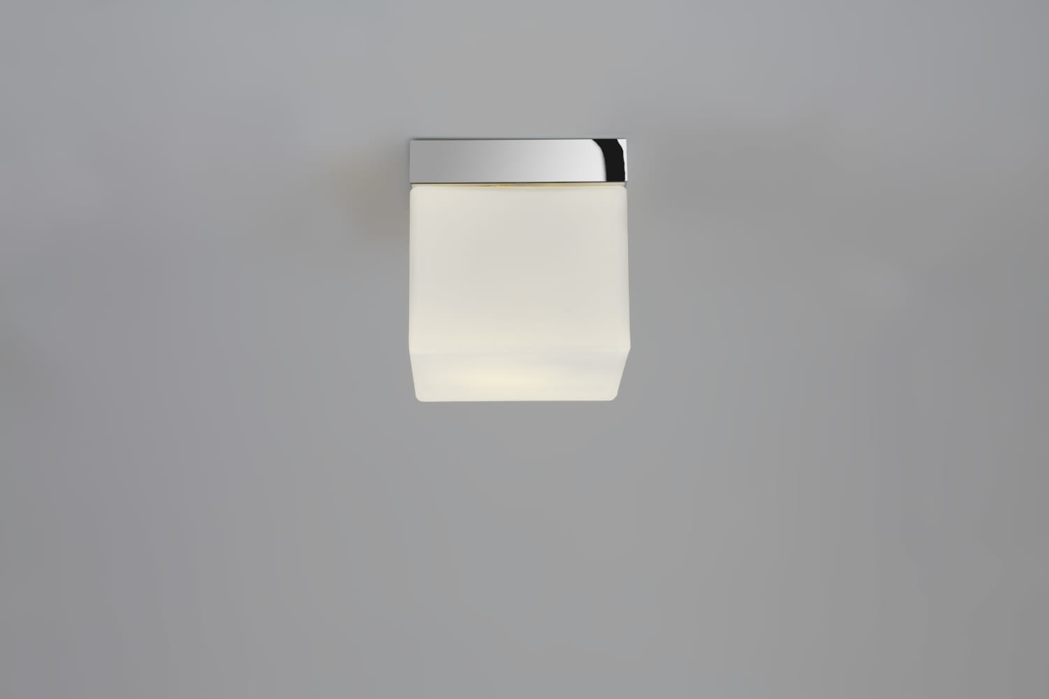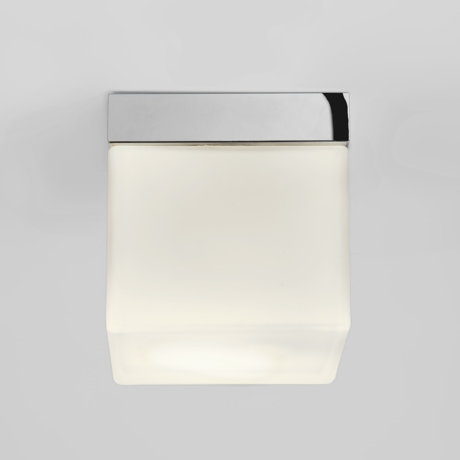 Flot Astro 7095 Sabina Square væg- og loftlampe i blank krom og opal glas. IP44-godkendt til vådrum. Ekskl. lyskilde.