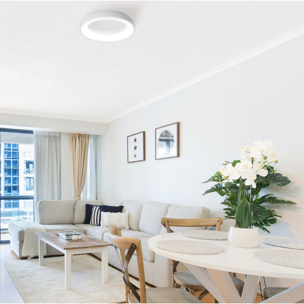 Moderne og dæmpbar LED loftlampe med 7500lm og 72W effekt. Fremstillet i aluminium med 120° spredning. IP20-klassificeret.