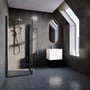 Komplet loftbruserpakke med stort brusehoved (Ø23 cm), håndbruser og trykbalanceret termostatblander. Håndbruseren har 3 funktioner: blød komfort, massage eller intensiv jetspray.