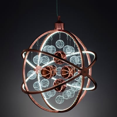 Flot LED pendel med unikt design i stål og glas. Galaxy loftlampen giver et behageligt lys og er dæmpbar. Denne model er i mat børstet kobber.