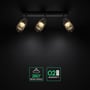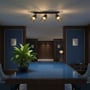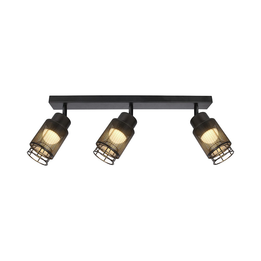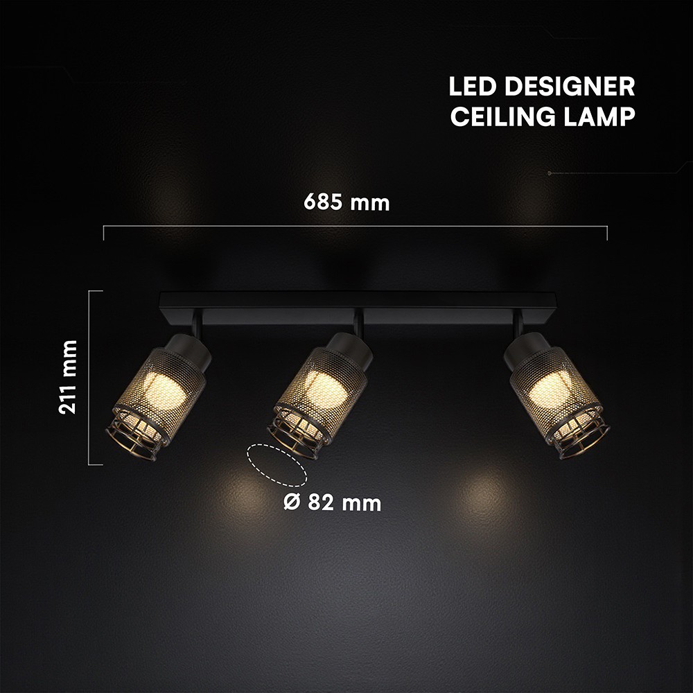Elegant 18W LED loftslampe med 3 justerbare spots. Leverer 2160lm med varmt lys (3000K). Mat sort finish. IP20 klassificeret.