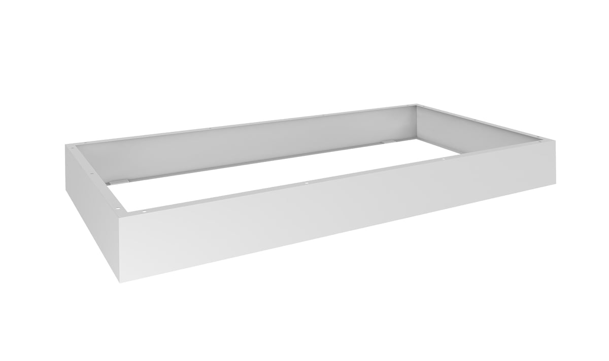 Dette hvide loftspodie er designet til montering af en Integrata emhætte med en bredde på 1200 mm og en højde på 155 mm. Det sikrer en elegant og funktionel integration af emhætten i dit køkken.