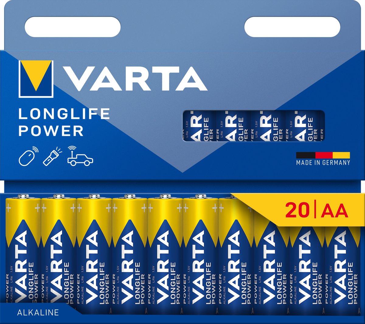 VARTA Longlife Power AA batterier er designet til enheder med et periodevis højt strømforbrug. Ideelle til legetøj, trådløse mus og lygter.