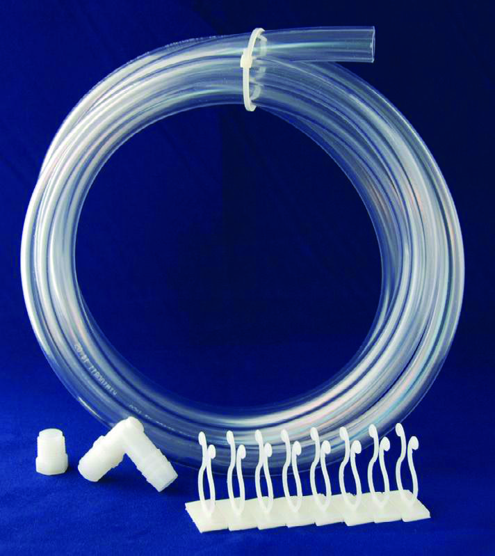 Fleksibelt vinyl-rør anvendes til at lede luft til cirkulation. Sættet inkluderer rør, connectors og holdere.