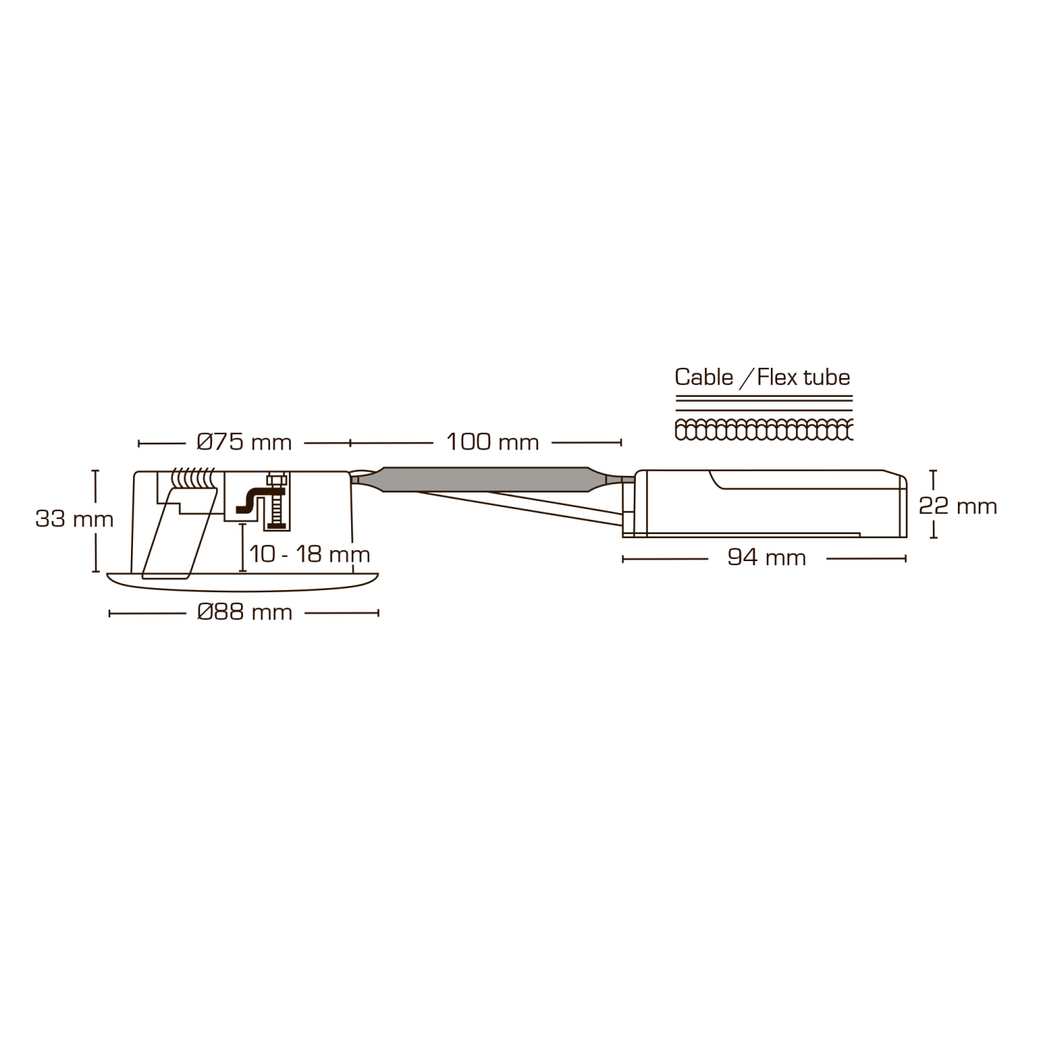 Med en indbygningshøjde på kun 33 mm er det muligt at montere Luna de fleste steder. Den udskiftelige LED lyskilde gør installationen fleksibel og fremtidssikret – eksempelvis ved ønske om en anden farvetemperatur.
