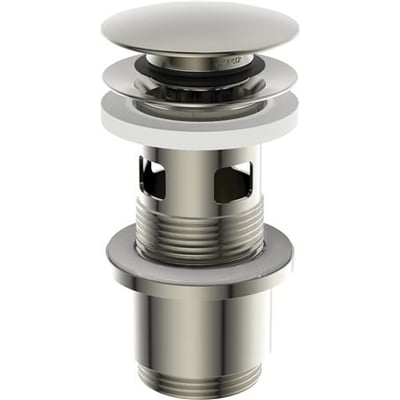 Lux push-bundventil i silver storm, med overløb. Anvender PVD teknologi.