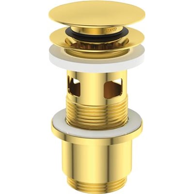 Lux push-bundventil i brushed gold med overløb, fremstillet med PVD teknologi.