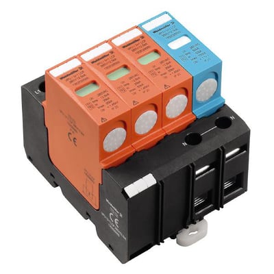 Enhed til lyn- og overspændingsbeskyttelse type 1+2. Kan monteres i hoved- og fordelingsskabe og beskytter mod direkte lynnedslag og overspændinger.